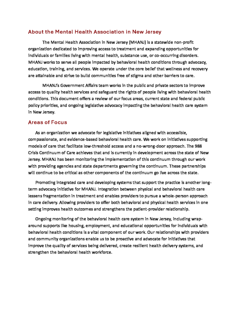 Agenda for Progress Click here to read and/or dowload the Mental Health Association in New Jersey’s2025 Agenda for Progress.